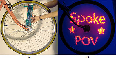 Shinjaran's persistence of vision (POV) display Shinjaran 14 Category: Making and Coding | A persistence of vision display is a neat way of writing in the air with light. Using the LEDs on your Engduino and a little creativity you can make shapes or even letters. Here's an example of a device on a bicycle wheel some students at Manchester University made. |